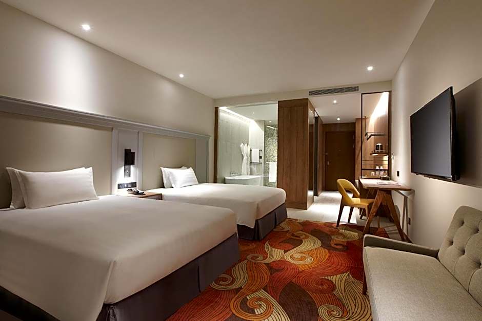 The twin/double room includes a private bathroom, well-fitted with a shower, a bidet, a hairdryer and slippers. The spacious air-conditioned twin/double room provides a flat-screen TV with cable channels, soundproof walls, a tea and coffee maker, a safe deposit box as well as city views. The unit offers 2 beds.